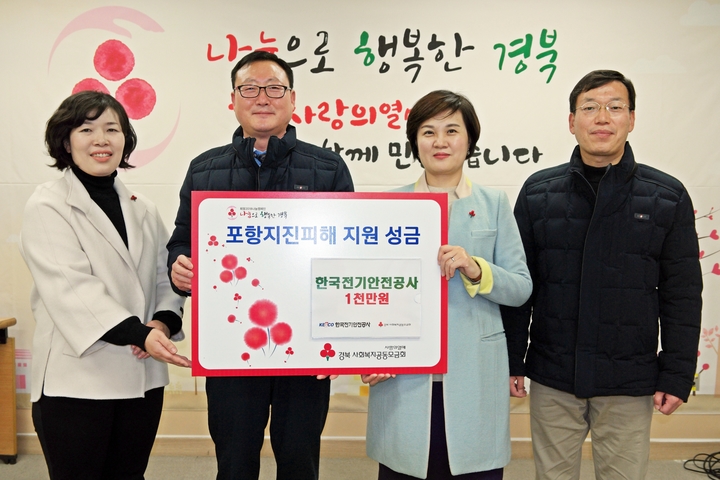 한국전기안전공사가 ‘포항지진’ 이재민돕기 성금으로 1천만원을 기탁했다고 30일 밝혔다.