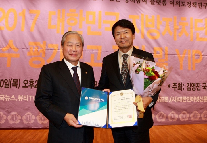 김종규 부안군수는 '2017 대한민국 지방자치단체 행정정책 행복지수 평가 시상식'에서 삶의 질 부문 대상을 수상했다고 30일 밝혔다.