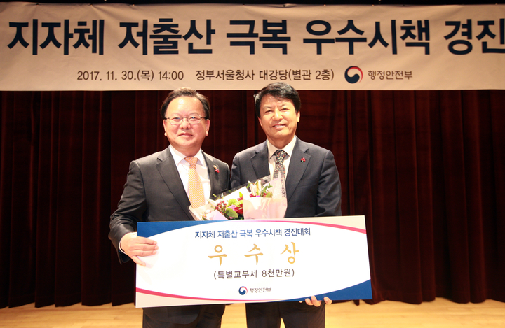 전북 부안군은 행정안전부 주관으로 지난 11월 30일 정부서울청사에서 열린 지자체 저출산 극복 우수시책 경진 대회에서 우수상을 수상해 국무총리 표창과 특별교부세 8000만원을 받았다고 1일 밝혔다.