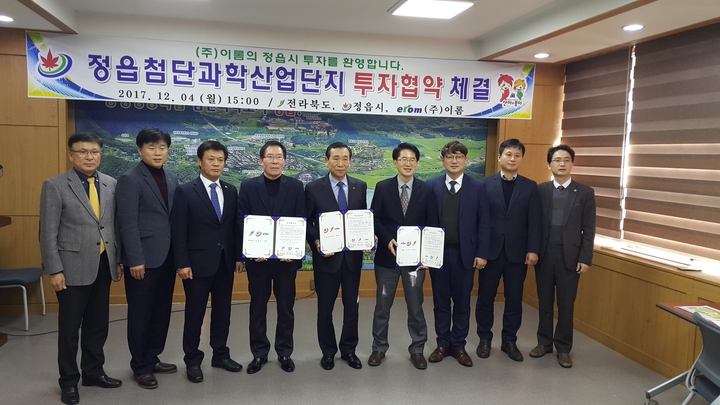 전라북도와 정읍시, ㈜이롬(대표 황성주, 김종균, 이하 이롬)은 정읍시 신정동 첨단과학산업 단지에 대한 투자 협약을 4일 체결했다고 밝혔다.