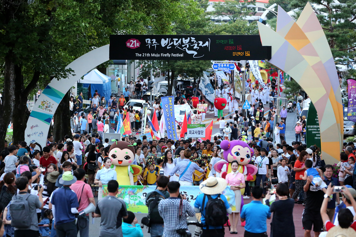 ‘자연의 빛 생명의 빛 미래의 빛’을 주제로 한 무주반딧불축제(5년 연속 정부지정 최우수축제)는 올해 21회를 맞아 8월 26일부터 9월 3일까지 무주읍 예체문화관 일원에서 개최됐으며, 25만여 명이 반딧불이 신비 탐사와 주제관 관람, 반디별 찾기 등 환경 축제에 걸맞는 주제 프로그램을 비롯한 낙화놀이, 섶다리 등 전통놀이 시연 등에 동참하는 성과를 올렸다.