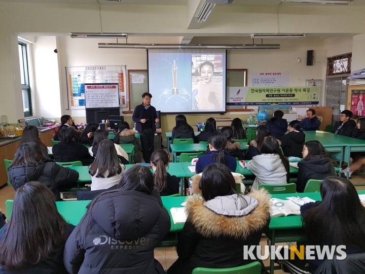 이번 프로그램은 과학에 관심 있는 정주고등학교 학생 30여명을 대상으로 한국원자력연구원 이윤종 박사로부터 “방사선, 어디까지 아니?”라는 주제로 특강을 실시했다.