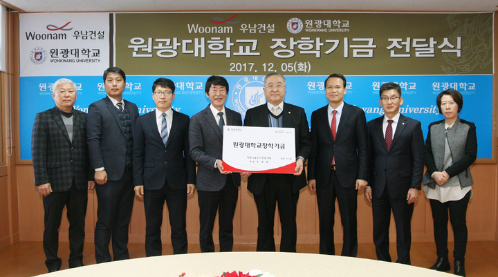 (주)우남건설이 지난 5일 원광대학교에 장학기금으로 1억 5천만원을 기탁했다고 6일 밝혔다.