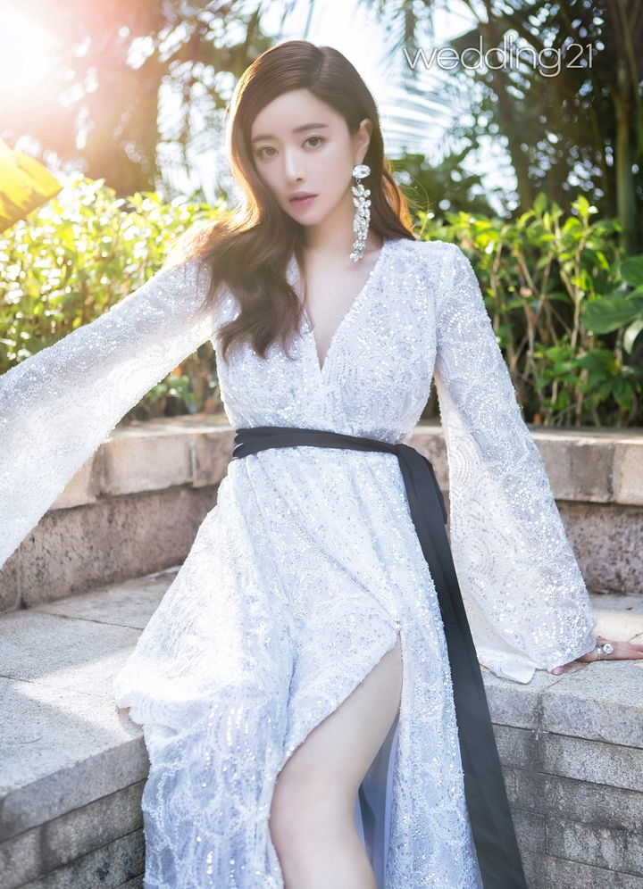배우 홍수아가 11일 중국에서 촬영한 웨딩화보를 공개했다.