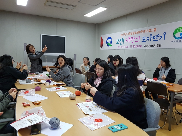 전북 고창군이 청소년수련시설 프로그램의 일환으로 운영한 아프리카 신생아 살리기 모자 뜨기 프로그램을 성황리에 마무리 했다고 13일 밝혔다.