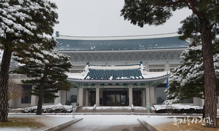 서울을 비롯한 중부지방에 많은 눈이 내린 10일 오전 청와대가 하얀 눈으로 뒤덮여 있다.
