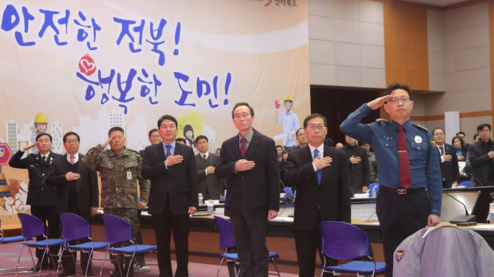 송하진 도지사는 이날 “도에서 마련한 지진 대책의 실행력과 안전신고 활성화를 위해 민관이 함께 힘을 모아야 한다”고 하면서 ‘앞으로도 지역의 재난안전 기관·단체가 재난 대응을 위해 똘똘 뭉쳐 도민의 안전을 지키는 든든한 버팀목이 되자“고 말했다.