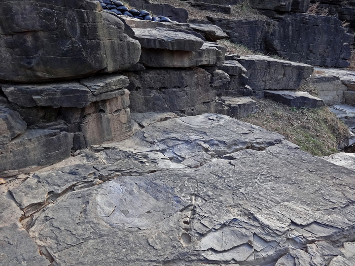 울산시가 14일 공개한 울산시 울주군 두동면 천전리에 위치한 공룡발자국 화석을 공개했다. 이 화석은 국보 147호 천전리 각석 인근에 있다.