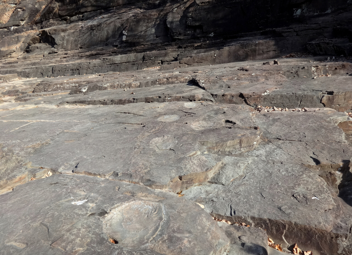 울산시가 14일 공개한 울산시 울주군 두동면 천전리에 위치한 공룡발자국 화석을 공개했다. 이 화석은 국보 147호 천전리 각석 인근에 있다.