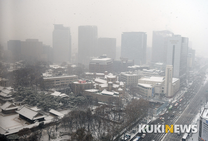 기상청은 서울의 눈이 강해지고 있어 이날 오전 9시 대설주의보를 내린다고 밝혔다.