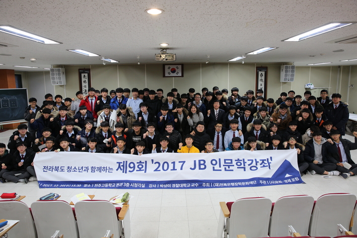 (재)전북은행장학문화재단은 지난 20일 청소년과 함께하는 제9회 ‘2017 JB인문학 강좌’ 마지막 강의가 전주고등학교에서 열렸다.