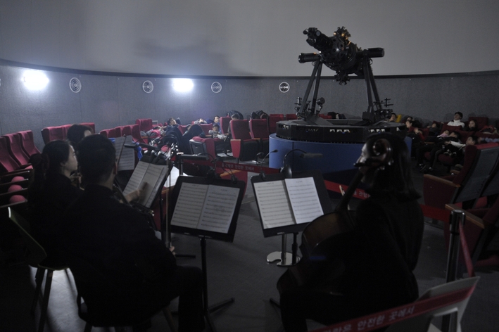 이날 운영된 행사는 현악 4중주 음악을 배경으로 천체 투영관에서 별들의 출생과 죽음, 성단, 성운 등 천체들을 감상하고, 전국 최대규모 304mm 주 망원경과 보조 망원경으로 달·직녀성·견우성 등 동화 속 친숙한 별들을 들여다 보는 우리 천문의 밝은 미래가 담겨 있는 행사다.