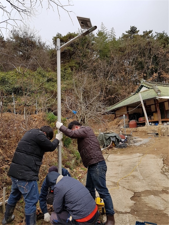 태양광 가로등은 14개 읍·면 지역사회보장협의체 위원들과 공직자들이 합심해 2017년 11월말부터 설치를 시작해 12월에 전 읍·면 설치가 완료됐다.
