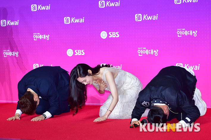 방송인 전현무, 배우 추자현, 가수 이상민이 30일 오후 서울 마포구 SBS프리즘센터에서 열린 '2017 SBS 연예대상' 레드카펫 행사에 참석해 포즈를 취하고 있다.