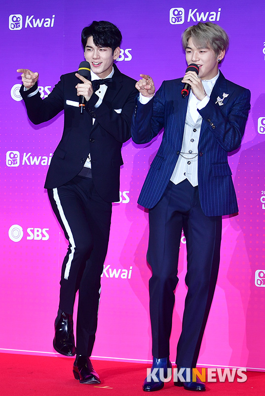 워너원 옹성우와 강다니엘이 30일 오후 서울 마포구 SBS프리즘센터에서 열린 '2017 SBS 연예대상' 레드카펫 행사에 참석해 포즈를 취하고 있다.