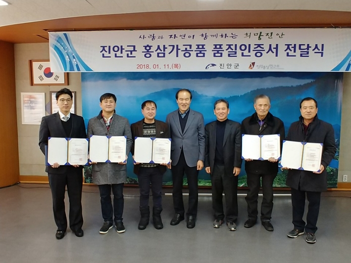 전북 진안군이 홍삼가공품 신규 품질인증을 받은 6개 제품과 품질인증 기간 연장 6개 제품에 대해 품질인증서를 전달했다고 11일 밝혔다.