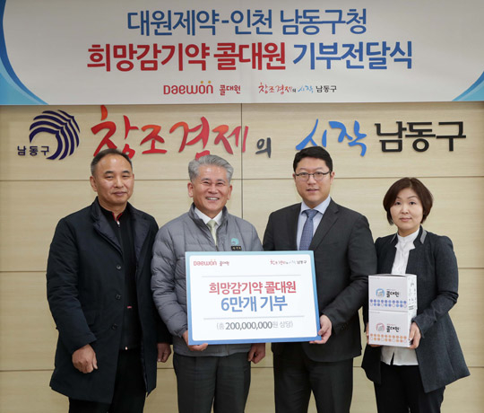 이 번에 전달된 6만여개의 콜대원 제품은 인천 남동구청을 통해 장애인복지시설을 비롯한 노인복지 및 저소득층 지원시설 등에 전달되어 겨울철 질병 치료를 위해 사용될 예정이다. 인천 남동구청은 ‘나눔 문화 확산’과 ‘기부문화의 정착’이라는 슬로건 아래, 제도적 한계로 공적 지원을 받지 못하는 사각지대에 대한 지속적인 나눔 활동을 진행해오고 있다.