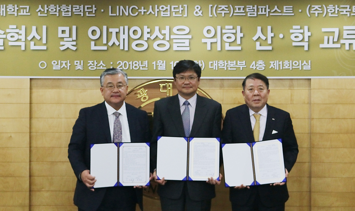 원광대학교 산학협력단 및 LINC+사업단, (주)프럼파스트, ㈜한국토미가 기술혁신 및 인재양성을 위한 산학교류회를 개최하고, 업무 협약을 체결했다.