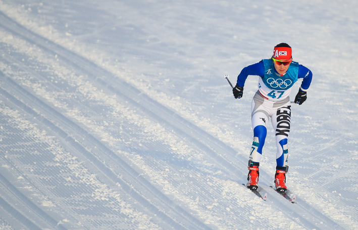 크로스컨트리 대표 이채원이 10일 오후 강원도 평창 알펜시아 크로스컨트리센터에서 열린 여자 7.5km+7.5km 스키애슬론 경기에 출전해 역주하고 있다.