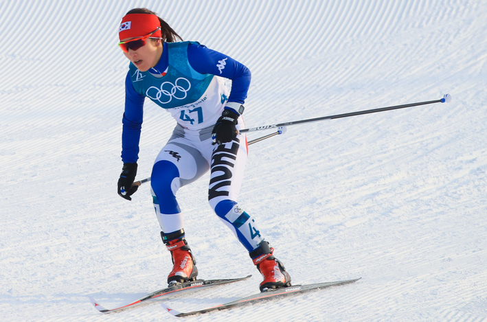 크로스컨트리 대표 이채원이 10일 오후 강원도 평창 알펜시아 크로스컨트리센터에서 열린 여자 7.5km+7.5km 스키애슬론 경기에 출전해 역주하고 있다.
