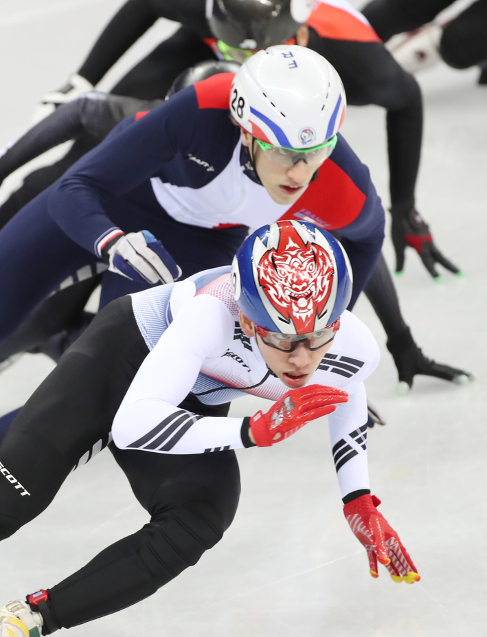 국가대표 임효준이 10일 오후 강릉 아이스아레나에서 열린 2018 평창동계올림픽 쇼트트랙 남자 1,500m 예선에서 레이스를 펼치고 있다.