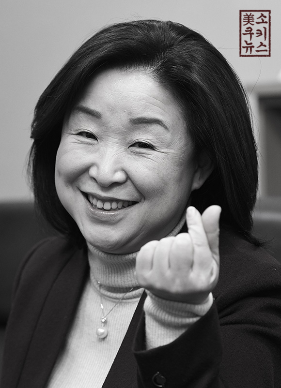 1년 전 엘리베이터에서 봤던 그 미소. 아무나 어울리기 힘든 단발머리. 고른 치아. 포인트는 진주 목걸이. 단호한 말투 반면에 부드러운 목소리. 의외로 걷는 모습은 청순해. 국회에서 엄마 느낌은 처음.