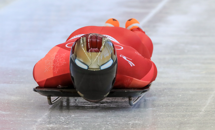 국가대표 윤성빈이 15일 강원도 평창군 슬라이딩센터에서 열린 남자 스켈레톤 1차 경기에서 레이스를 펼치고 있다.