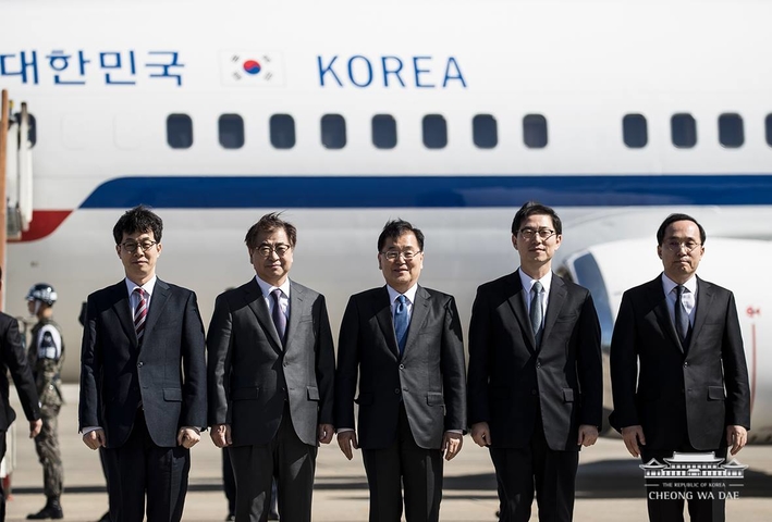 문재인 대통령의 대북 특별사절 대표단이 5일 오후 성남 서울공항을 통해 평양으로 출발했다.