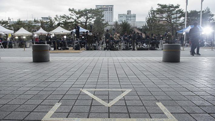 14일 오전 서울 서초구 서울중앙지방검찰청에서 취재진이 이명박 전 대통령 검찰 소환을 취재하기 위해 기다리고 있다.