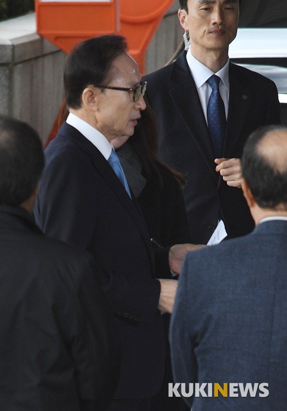 뇌물수수·횡령·조세포탈 등 혐의를 받는 이명박 전 대통령이 14일 오전 서울 서초구 서울중앙지검에 피의자 신분으로 출석했다.