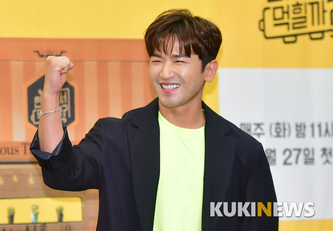 가수 이민우가 26일 오후 서울 월드컵북로 스탠포드호텔에서 열린 tvN 새 예능 ‘현지에서 먹힐까?’ 제작발표회에서 포즈를 취하고 있다.