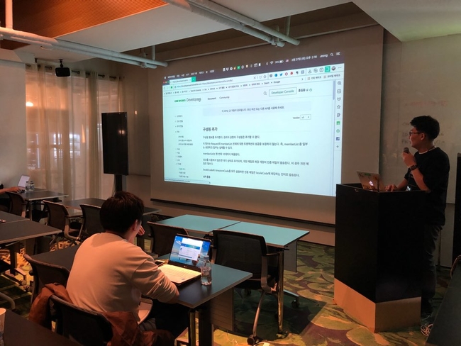 28일 웍스모바일은 “전날 경기 성남시 분당구 그린팩토리에서 열린 라인웍스 디벨로퍼스 밋업에서 고객사 개발자를 대상으로 업무용 협업 툴 ‘라인웍스’ 솔루션에 대해 설명했다”고 밝혔다.