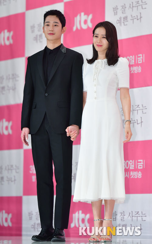 배우 손예진과 정해인이 28일 오후 서울 영중로 타임스퀘어 아모리스 홀에서 열린 JTBC 새 금토드라마 ‘밥 잘 사주는 예쁜 누나’ 제작발표회에서 포토타임을 갖고 있다.