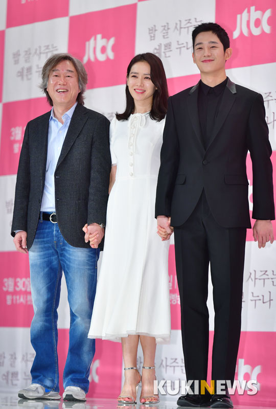 감독 안판석과 배우 손예진, 정해인이 28일 오후 서울 영중로 타임스퀘어 아모리스 홀에서 열린 JTBC 새 금토드라마 ‘밥 잘 사주는 예쁜 누나’ 제작발표회에서 포토타임을 갖고 있다.