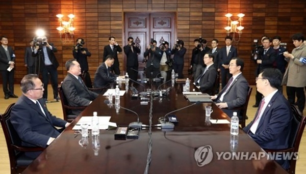 이날 고위급회담에서는 남측 대표단으로 조명균 통일부 장관을 비롯해 천해성 통일부 차관, 윤영찬 청와대 국민소통수석이 참석했다. 북측은 리선권 조국평화통일위원회 위원장을 비롯해 전종수 조평통 부위원장, 김명일 조평통 부장이 자리했다.