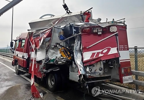 경찰은 트럭과 부딪친 뒤 소방차가 40~50m가량 밀려 나갔다고 전했다.