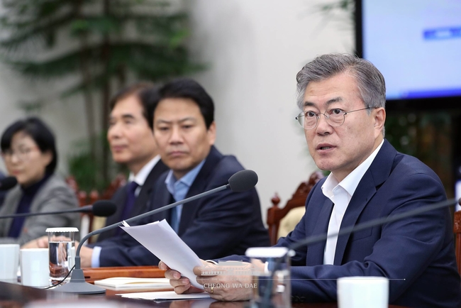 2일 오후 문재인 대통령이 청와대 여민관에서 열린 수석·보좌관 회의에 참석해 발언하고 있다.