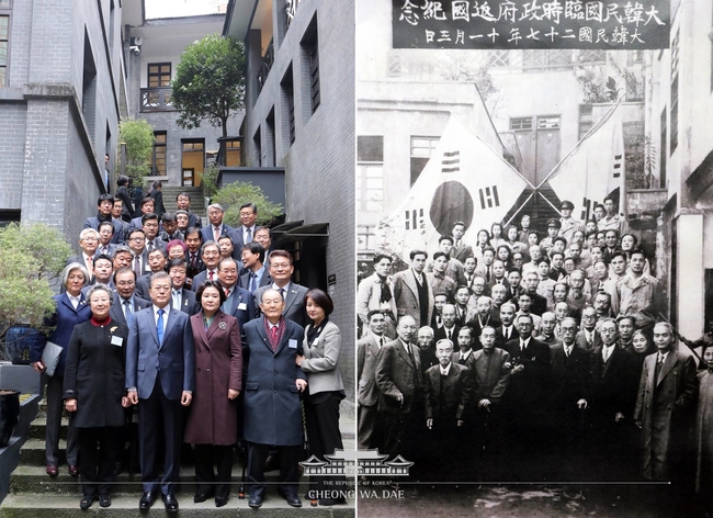 위 사진은 문재인 대통령이 뽑은 최고의 사진으로 지난 중국 순방때 방문한 충칭 대한민국 임시정부 계단 앞에서 찍은 사진이다.