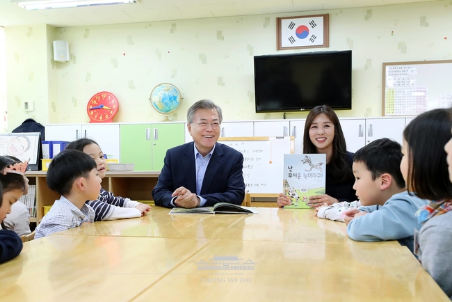이날 문 대통령을 일일 돌봄 교사가 되어 현장의 소리를 듣고 아이들과 시간을 보냈고, 학부모 대표로 배우 장신영이 참석했다.