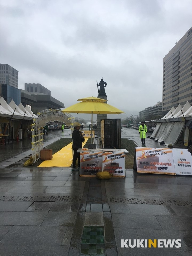 이날 촛불집회가 열렸던 광화문 광장은 고요했다. 비까지 내리며 분위기는 무거웠다. 광장에서 만난 김용환(28)씨는 “(박 전 대통령이) 합당한 처벌을 받기 전까지 촛불이 남긴 불씨는 꺼지지 않을 것”이라며 “법이 살아있음을 보여주면 좋겠다”고 언급했다.