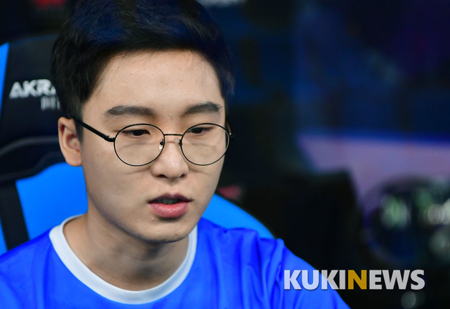 MVP '파일럿' 나우형이 17일 서울 상암 OGN e스타디움에서 열린 2018 리그 오브 레전드 챔피언스 코리아(롤챔스) 서머 시즌 승강전 1경기 에버8위너스와의 경기에 앞서 리허설을 하고 있다.