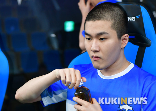 MVP '비욘드' 김규석이 17일 서울 상암 OGN e스타디움에서 열린 2018 리그 오브 레전드 챔피언스 코리아(롤챔스) 서머 시즌 승강전 1경기 에버8위너스와의 경기에 앞서 리허설을 하고 있다.