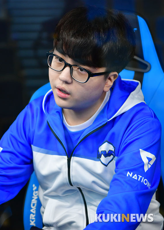 MVP '이안' 안준형이 17일 서울 상암 OGN e스타디움에서 열린 2018 리그 오브 레전드 챔피언스 코리아(롤챔스) 서머 시즌 승강전 1경기 에버8위너스와의 경기에 앞서 리허설을 하고 있다.