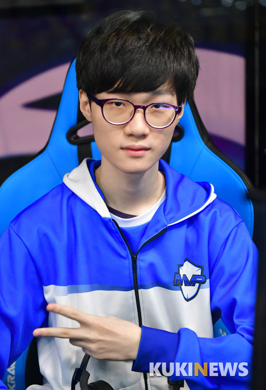 MVP '애드' 강건모가 17일 서울 상암 OGN e스타디움에서 열린 2018 리그 오브 레전드 챔피언스 코리아(롤챔스) 서머 시즌 승강전 1경기 에버8위너스와의 경기에 앞서 포즈를 취하고 있다.
