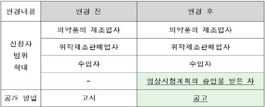 그동안 의약품 제조업‧위탁제조판매업‧수입자만 희귀의약품으로 지정받아 제품을 개발할 수 있었으나, 앞으로는 임상시험 계획을 승인 받은 경우에도 신청이 가능하게 된다.