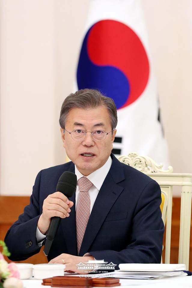 문재인 대통령이 19일 오후 청와대 충무실에서 언론사 사장단과의 간담회에서 인사말을 하고 있다.