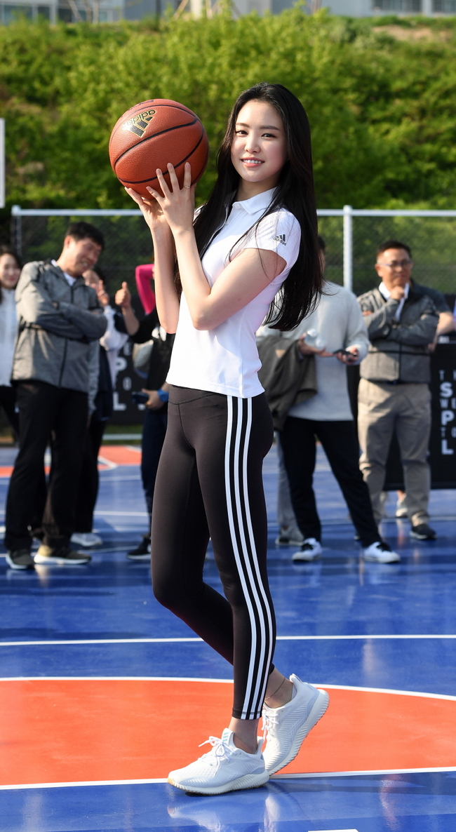 가수 손나은이 25일 오후 서울 성동구 응봉체육공원에서 열린 '아디다스X서울시 사회공헌 이벤트' 행사에서 포즈를 취하고 있다.