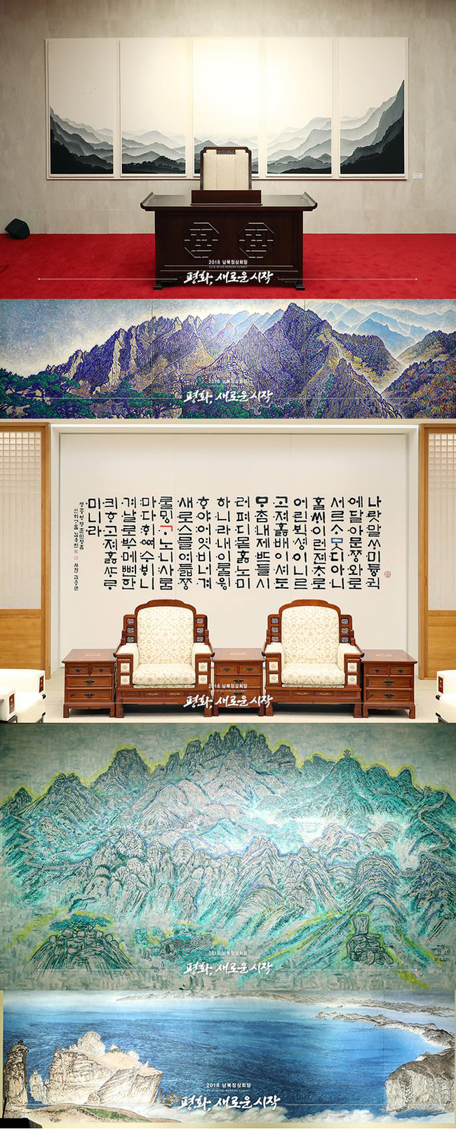 2018 남북정상회담을 맞아 청와대가 공식 SNS을 통해 판문점 평화의집에 새롭게 단장한 미술품을 공개했다.
