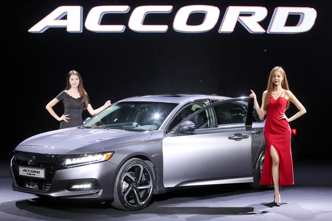 10일 오전 서울 용산구 그랜드 하얏트 호텔 열린 혼다코리아 10세대 어코드 출시 행사에서 모델들이 포즈를 취하고 있다. 10세대를 맞이해 새롭게 재탄생한 어코드는 터보 엔진을 탑재하고 10단 변속기, 혼다 센싱 등 혼다의 첨단 기술이 적용됐다.