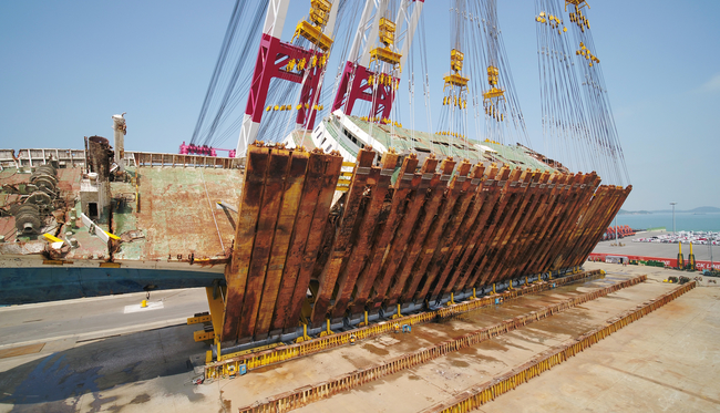 10일 오전 전남 목포시 목포신항에서 세월호 직립작업이 진행되고 있다.